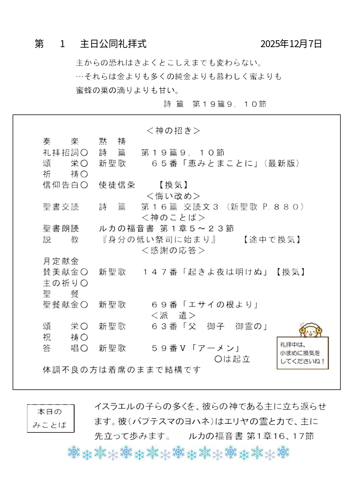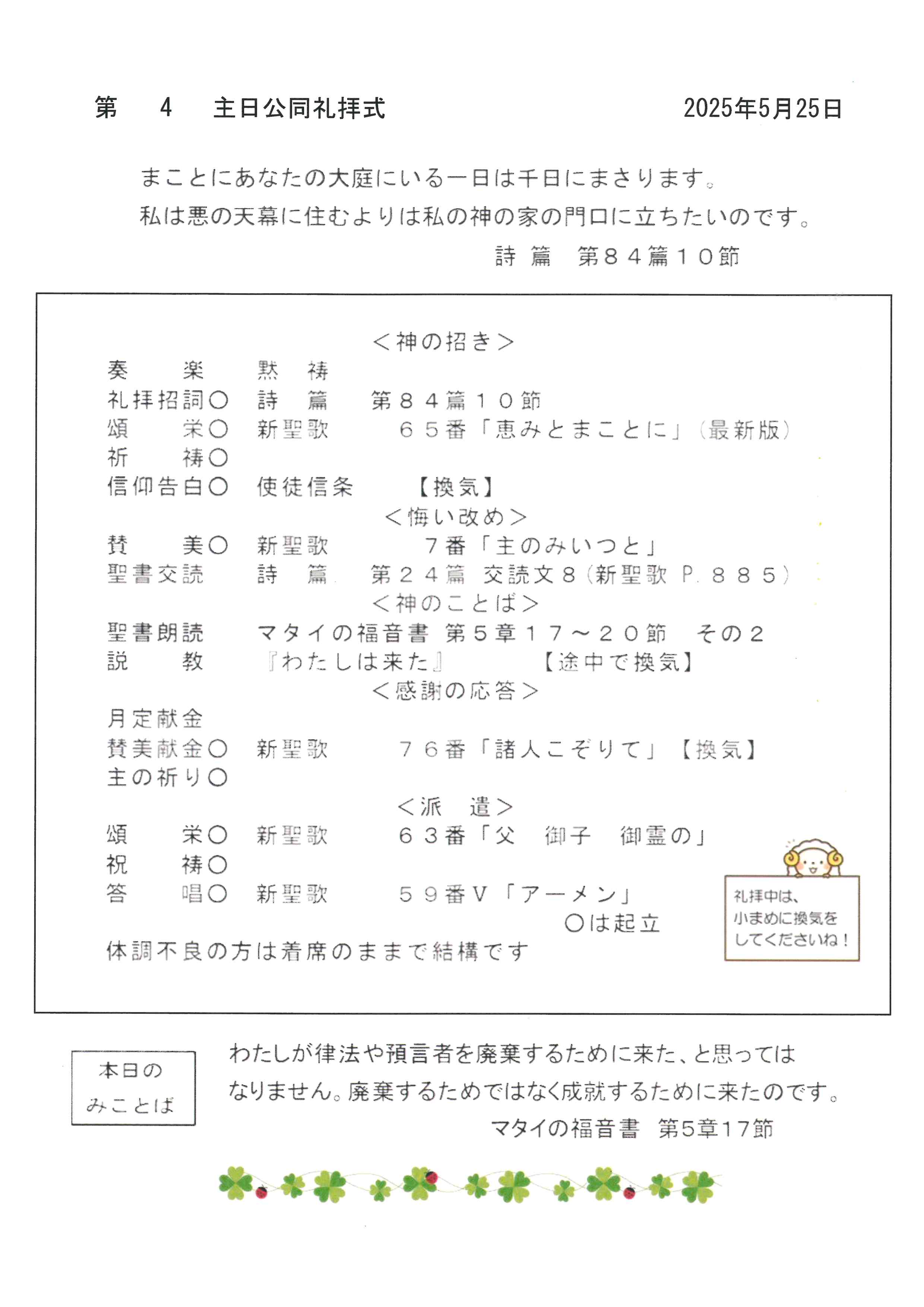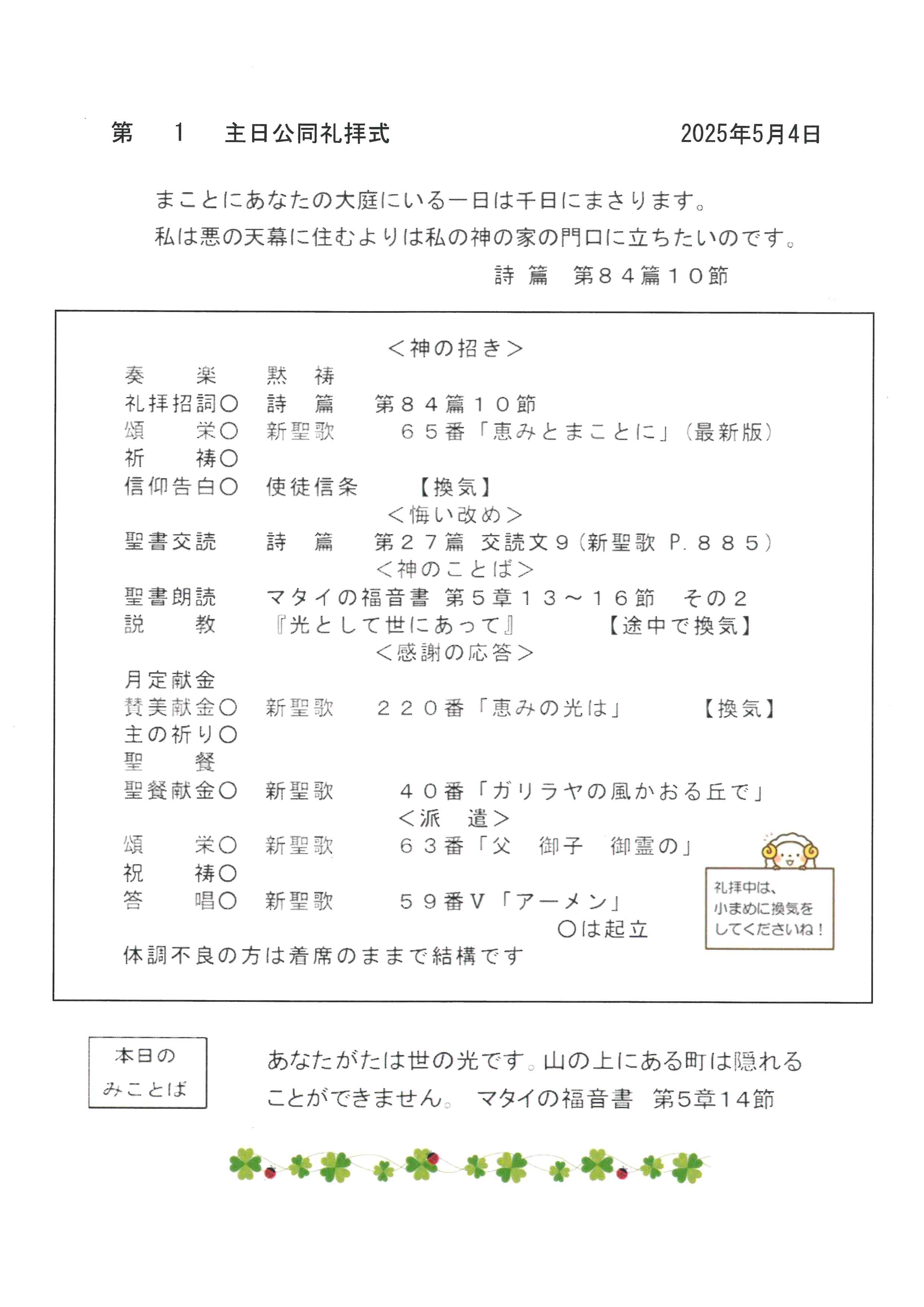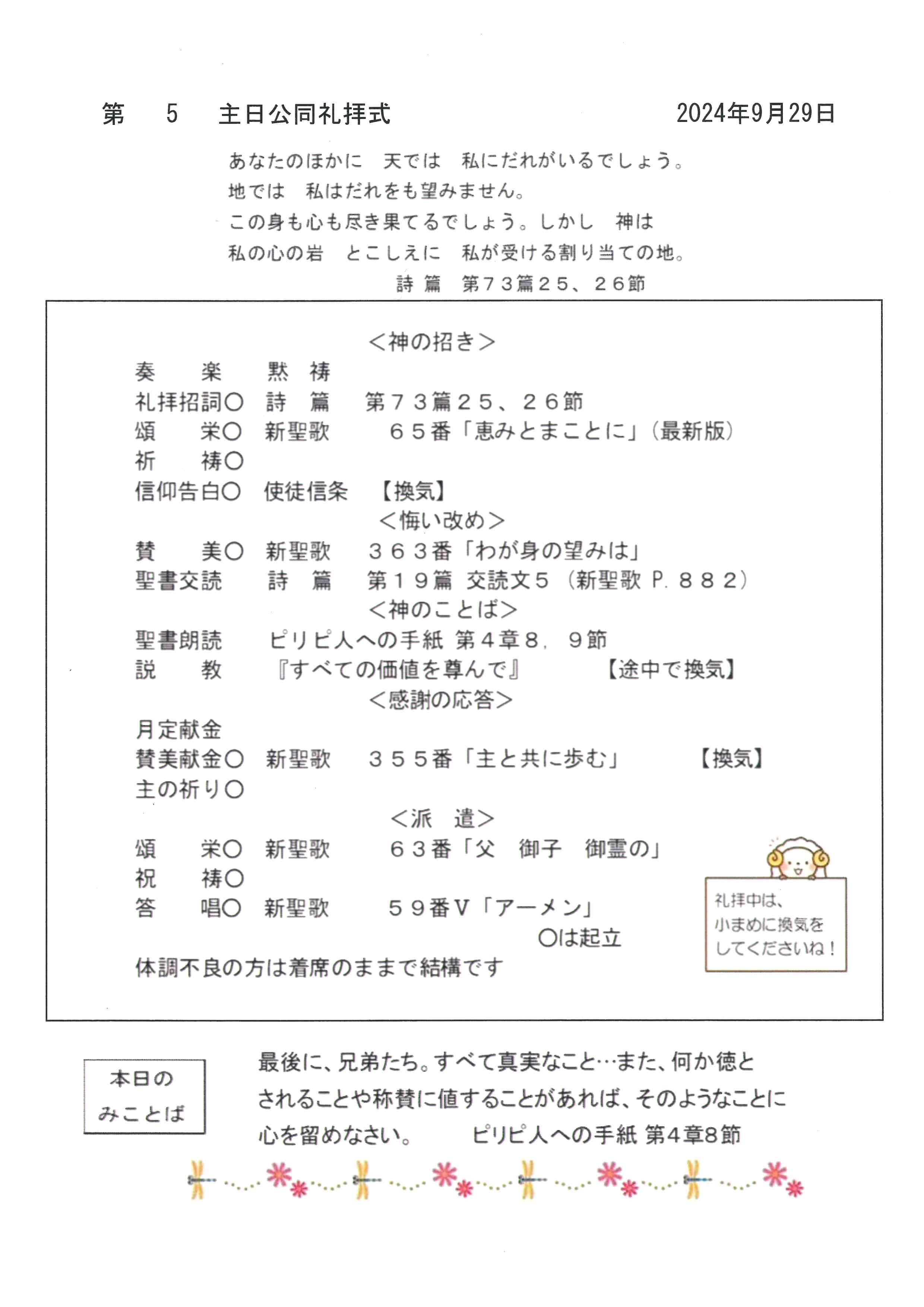 礼拝式プログラム・行事