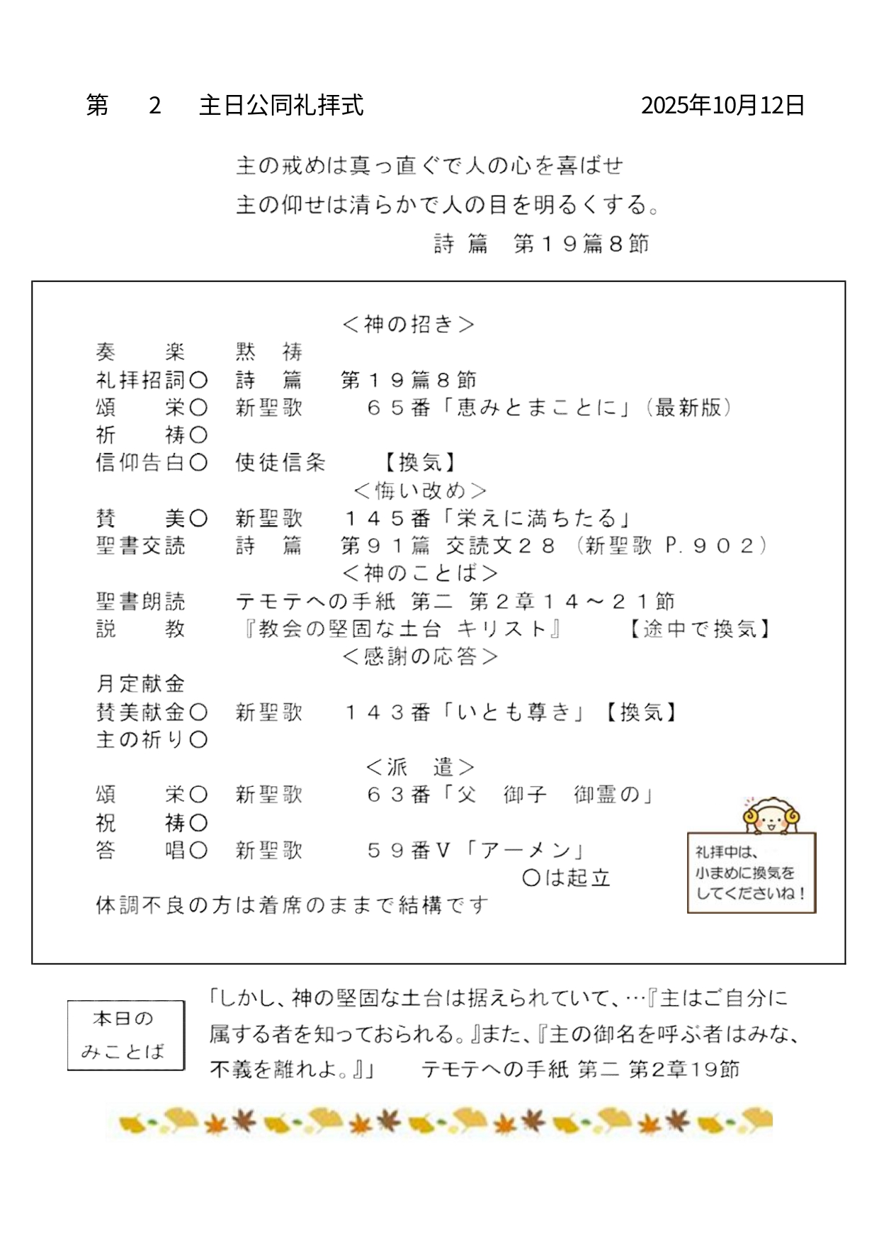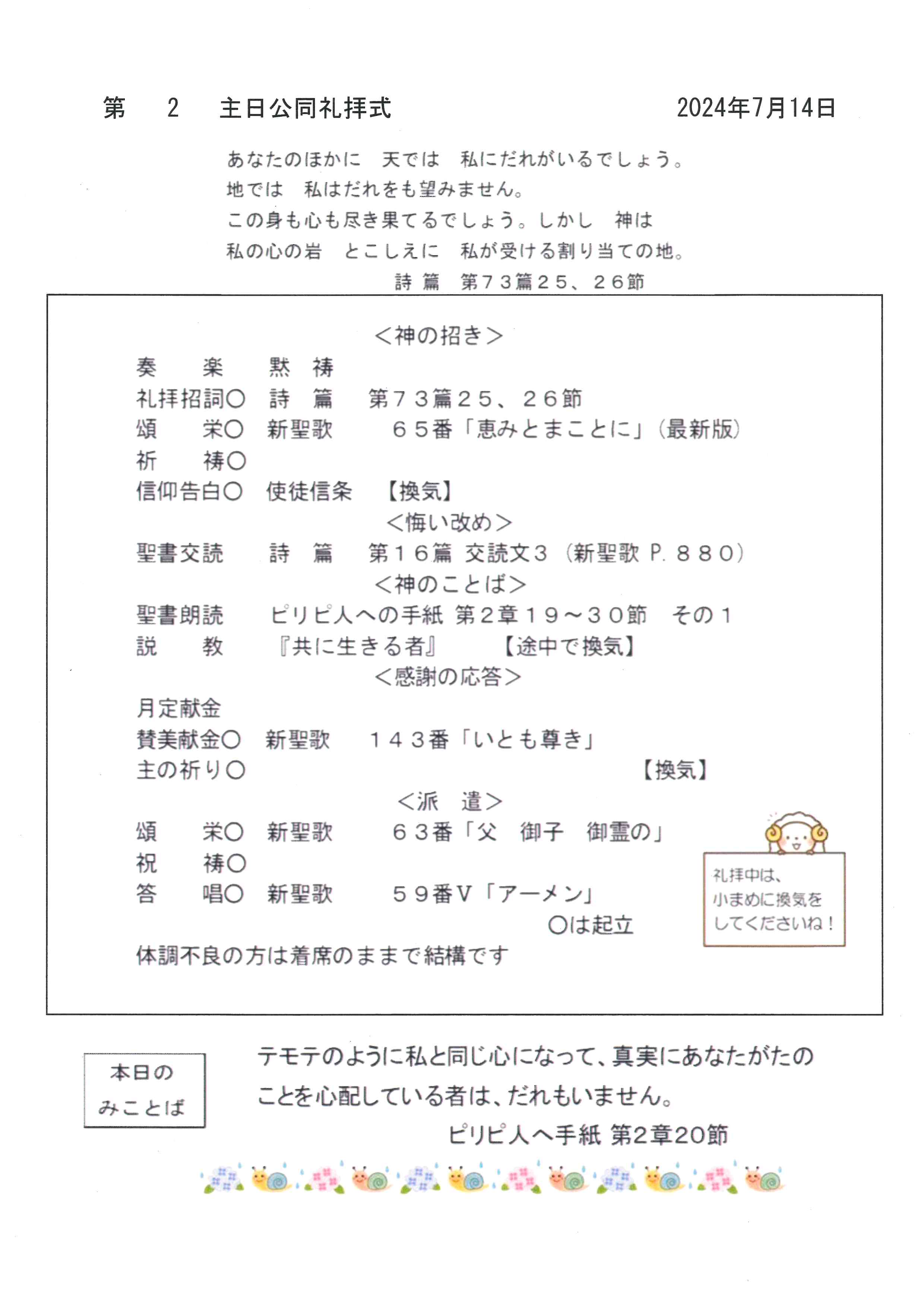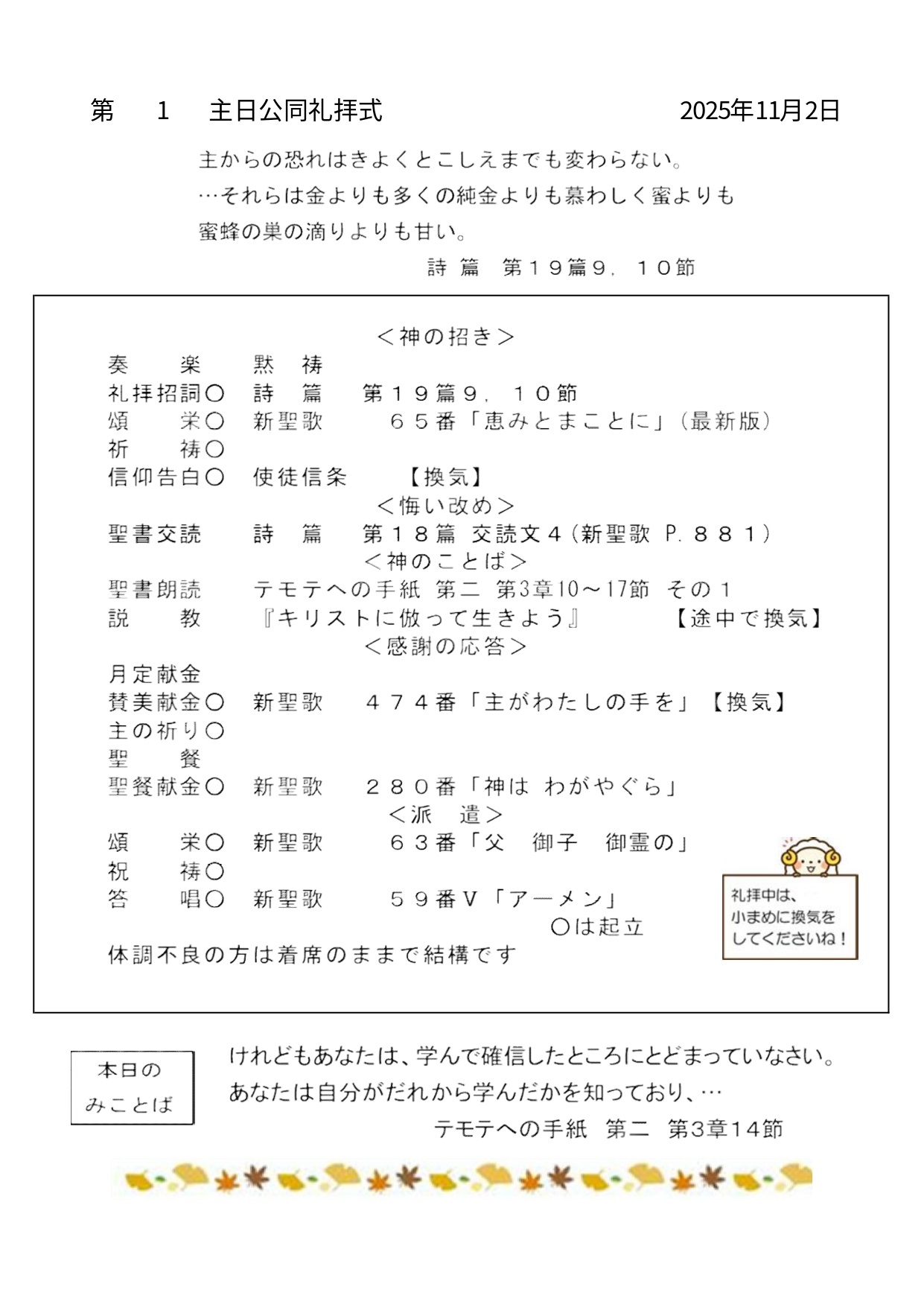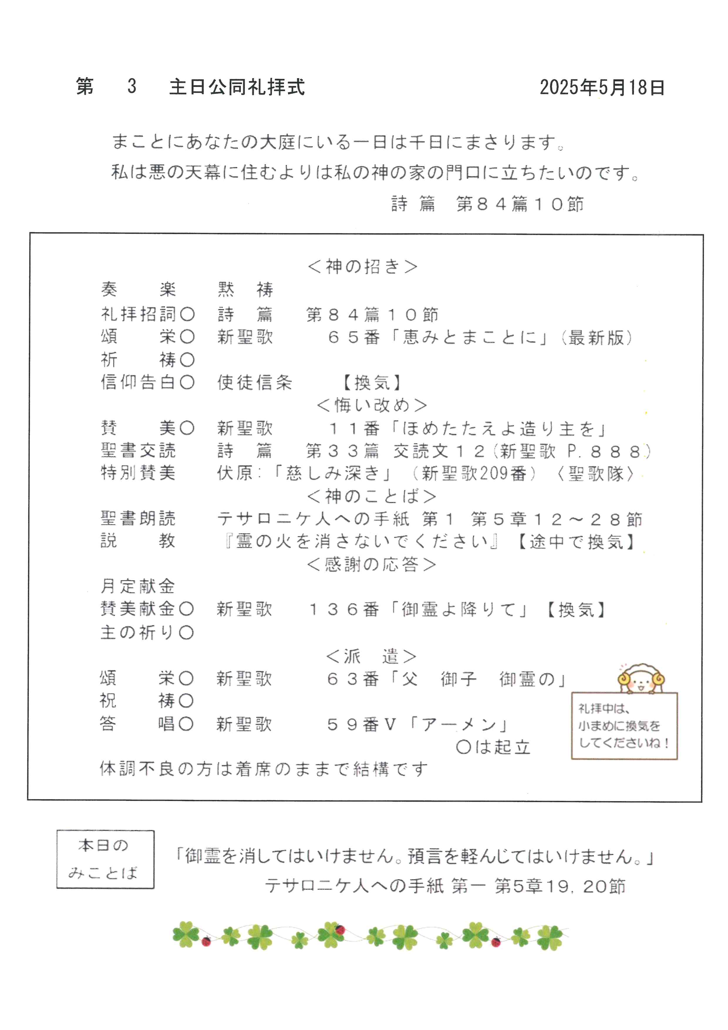 礼拝式プログラム・行事